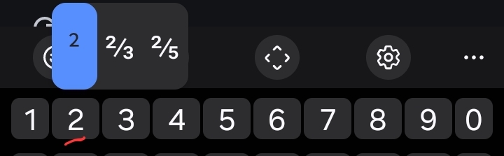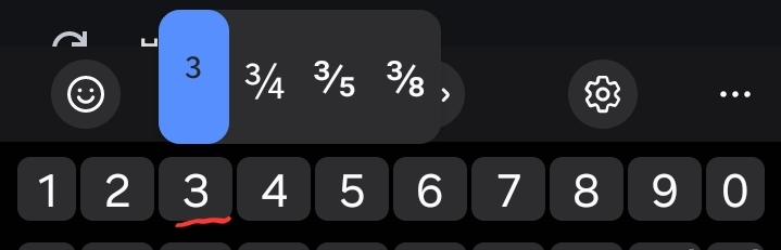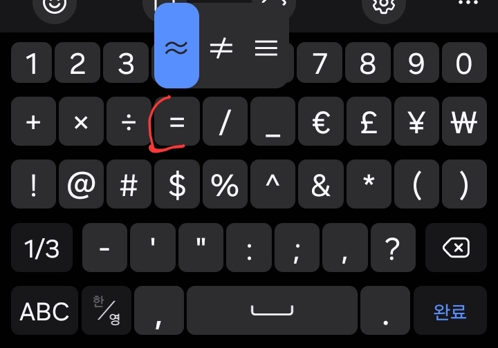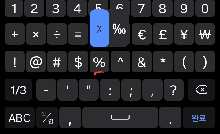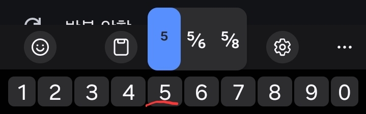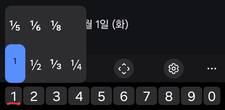 숫자키를 길게 누르면 위첨자나 분수 등 입력가능