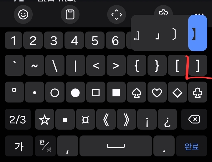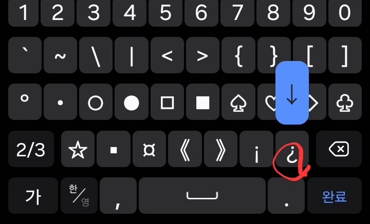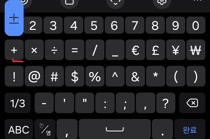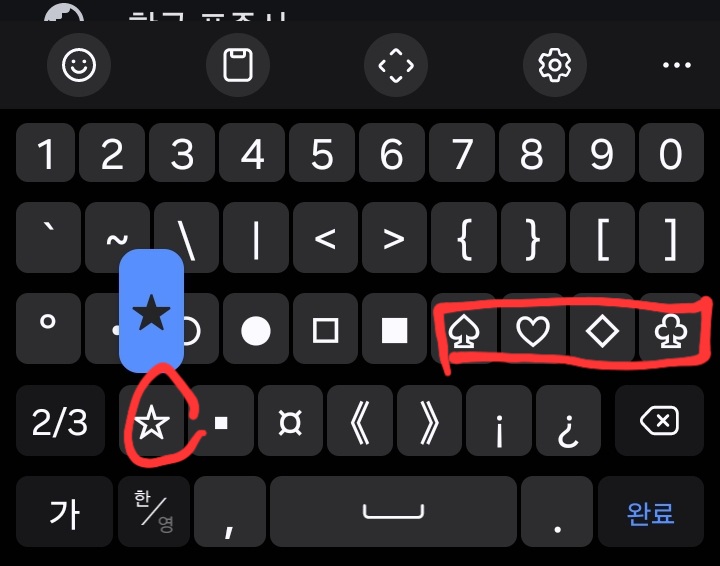 기본 삼성키보드 자판의 특수문자에는 있지만 키카페 특수문자 자판애는 기본으로 안 보이던 키들이 보입니다.