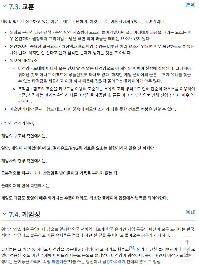 네이비필드(게임)에 대한 어떤 글 본문