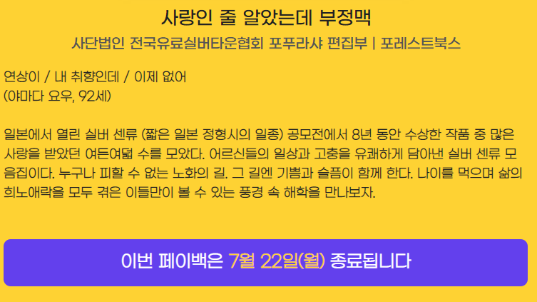 기간 사랑인 줄 알았는데 부정맥 사단법인 전국유료실버타운협회 포푸라샤 편집부 | 포레스트북스 연상이 / 내 취향인데 / 이제 없어 (야마다 요우, 92세) 일본에서 열린 실버 센류 (짧은 일본 정