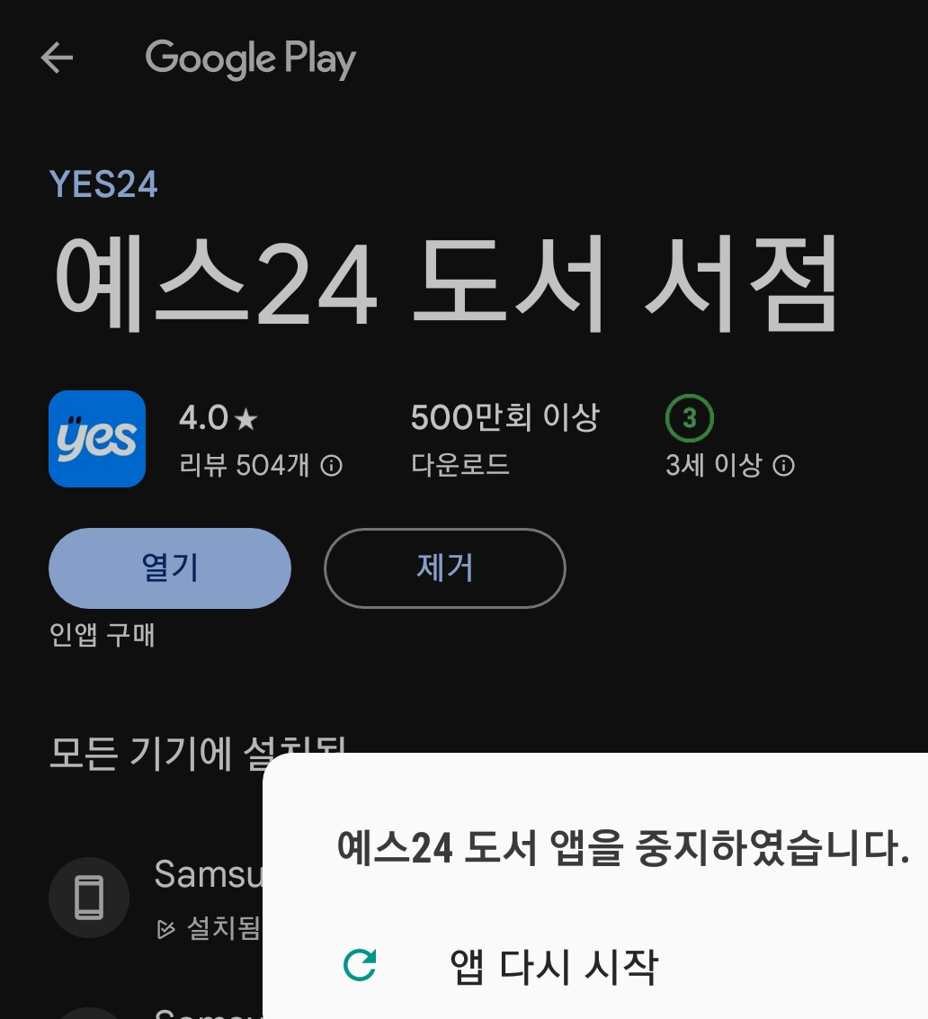 서점앱 이용 중 앱이 수시로 크래시하는 건 작년에도 그랬고요.