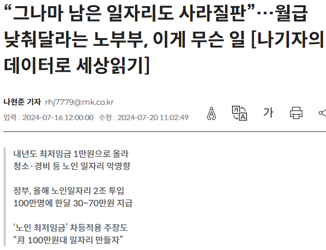 “그나마 남은 일자리도 사라질판”…월급 낮춰달라는 노부부, 이게 무슨 일 [나기자의 데이터