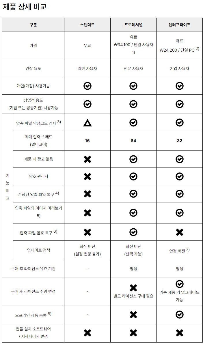 출처: https://kr.bandisoft.com/bandizip/help/edition-comparison/