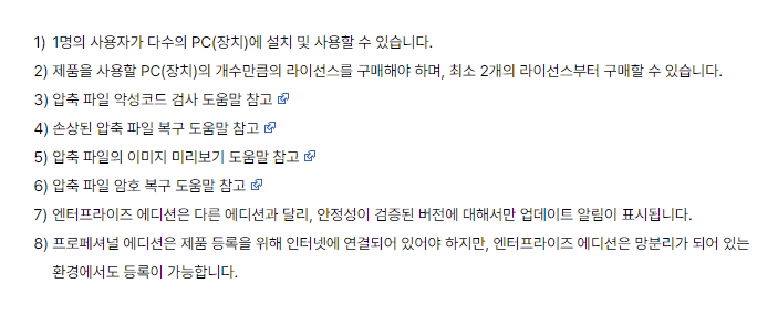 ㅡ 엔터버전을 뺀 나머지는 업데이트 안내는 항상 최신버전.
