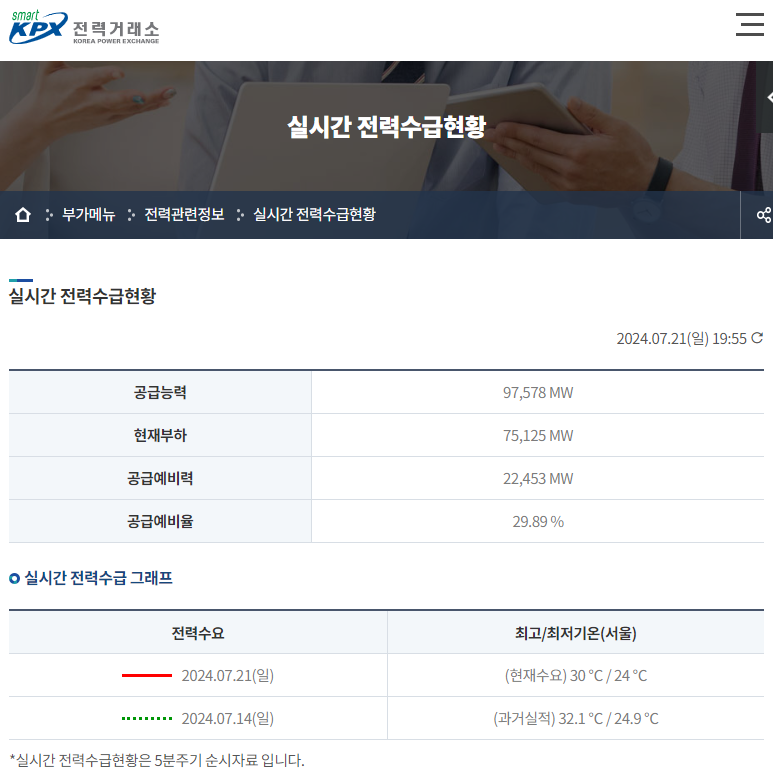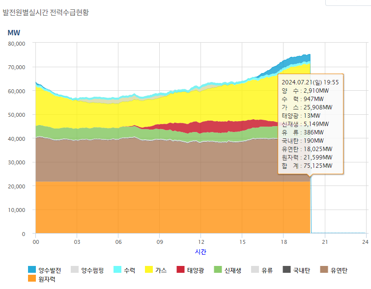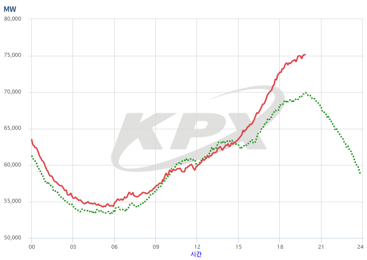 오늘 에어컨 많이 쓰나 보네요 (전력거래소 실시간 전력수급 그래프)/:/ 과거기록 찾아보기 본문
