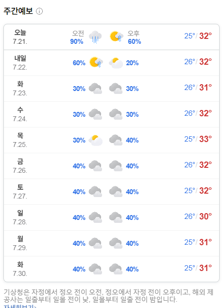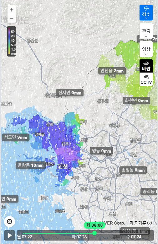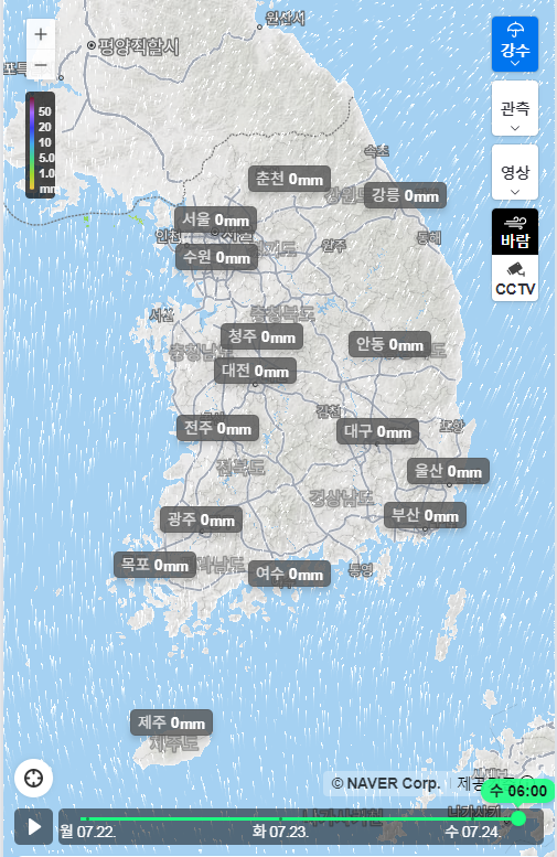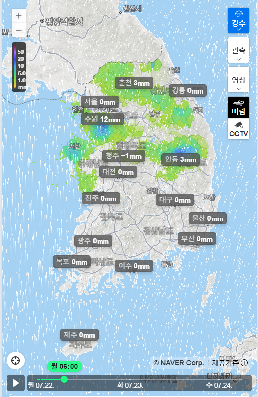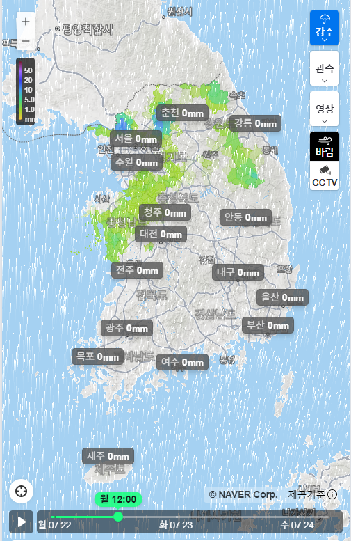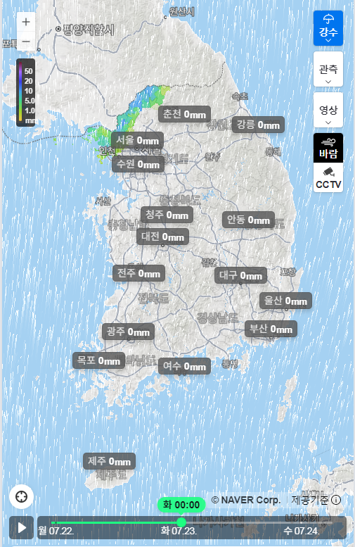 7.24. 수요일 새벽까지 네이버 날씨지도