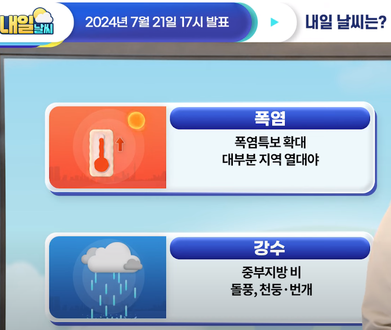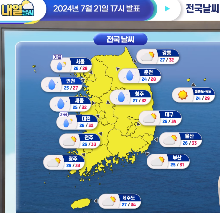 [내일날씨] 폭염특보 확대! 중부지방 비. 7월 21일 17시 기준