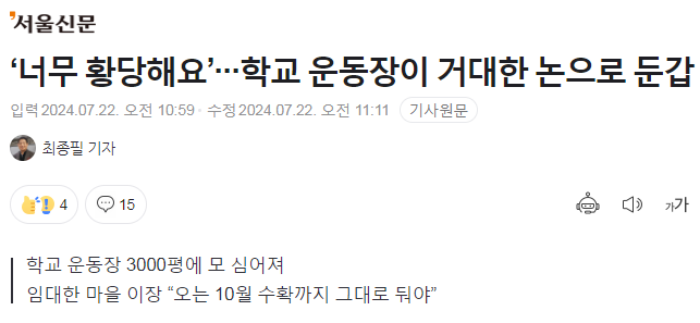 ‘너무 황당해요’···학교 운동장이 거대한 논으로 둔갑