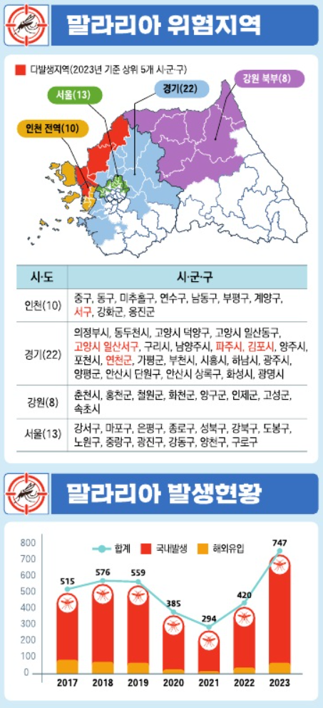 서울 양천구에 이어 강서구도 말라리아 경보 발령(보름간 동네환자 2명 발생)/:/ 말라리아 질병정보 등 본문