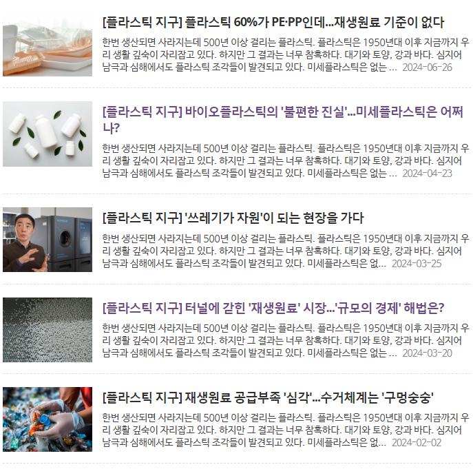 플라스틱 지구 - 뉴스트리 연재: 플라스틱 재활용 등 본문