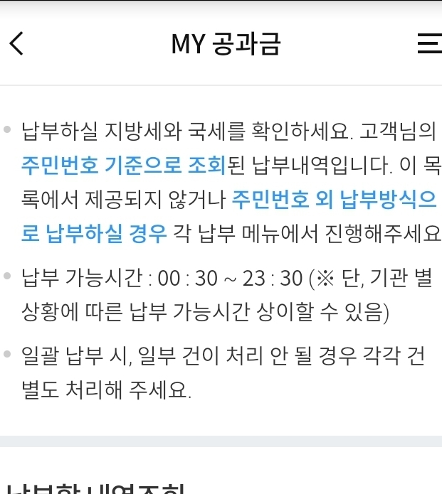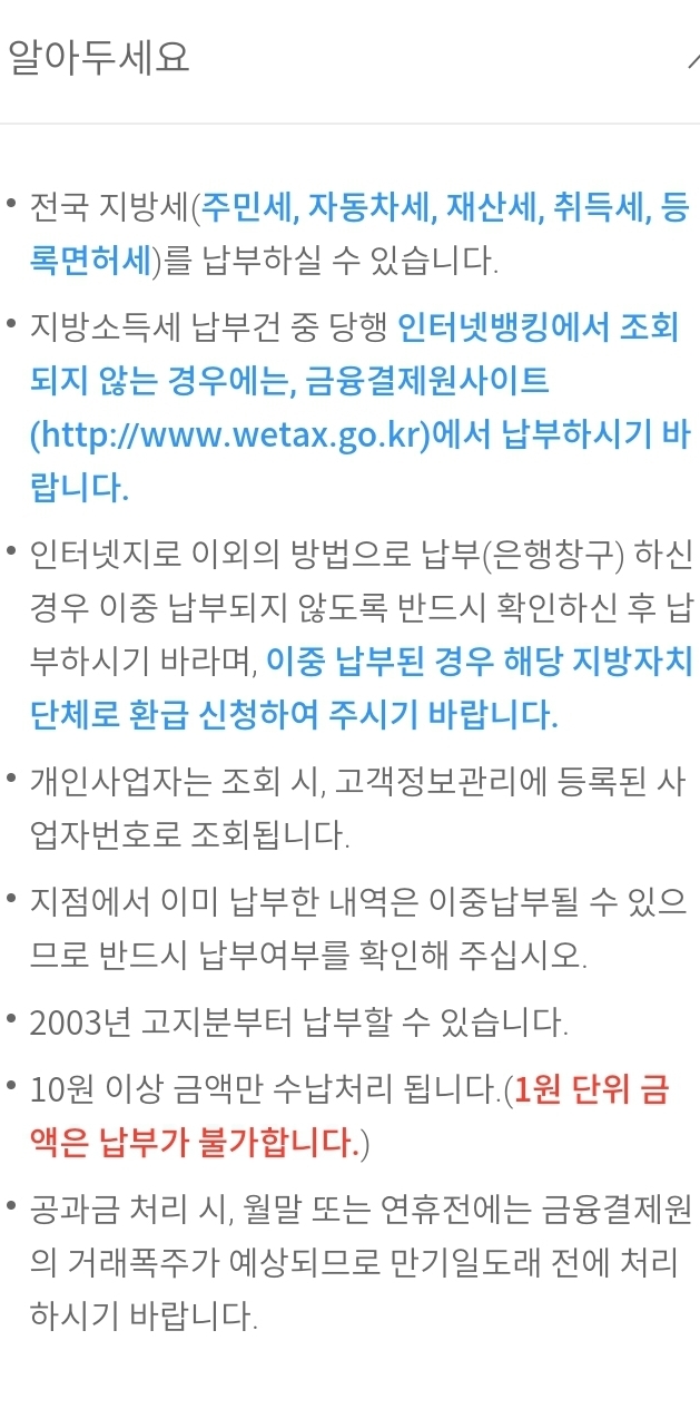 은행앱의 지방세 납부메뉴: 우리은행 본문