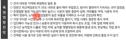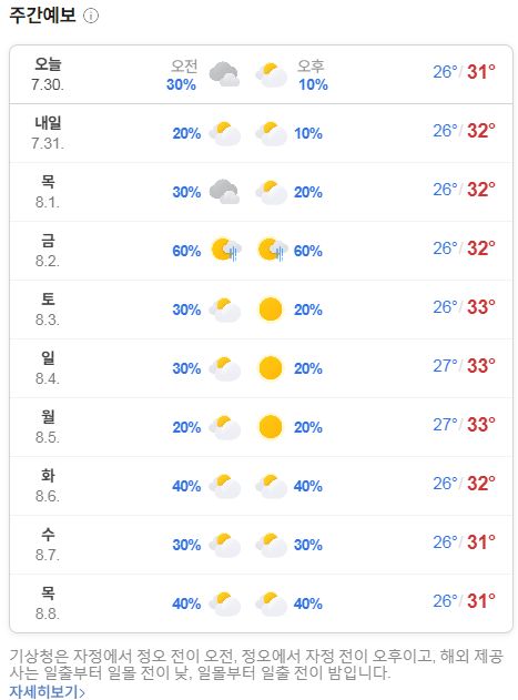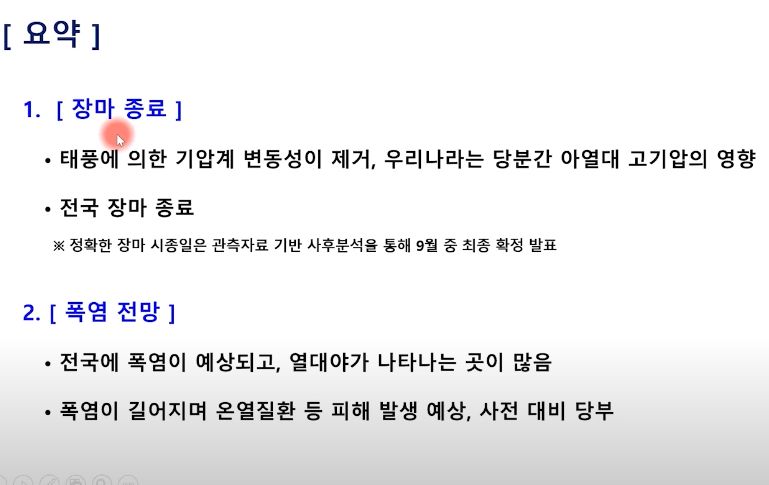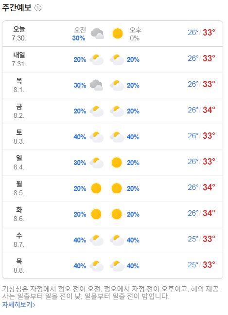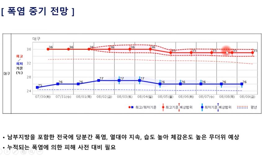 2024.7.30~8.8 일기예보: 올해 장마가 끝났다는 뉴스; 습도는 약간 덜하겠지만 여름 폭염날씨 시작 본문