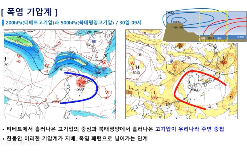 폭염 열대야 강화. 태풍이 끌어 올린 북태평양고기압 (24년 7월 30일 기상청 예보브리핑)