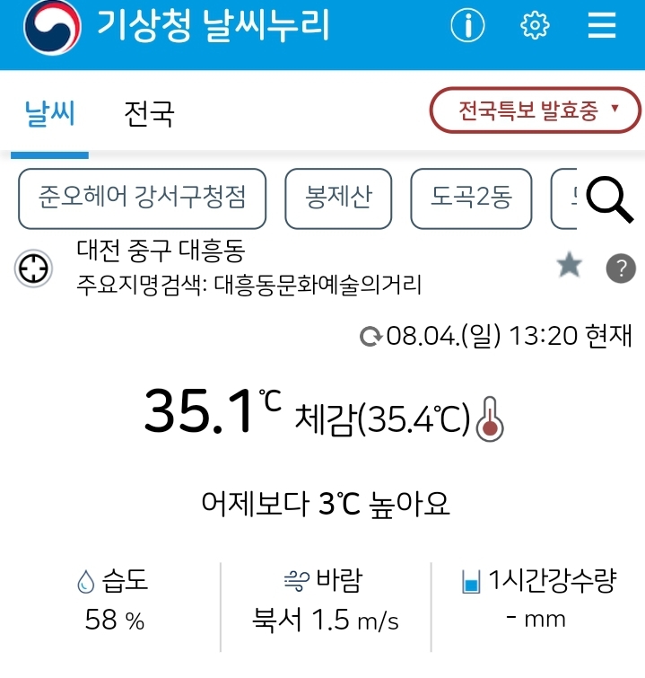 전국 폭염특보. 대전 35도! 본문