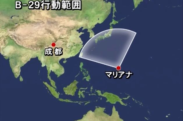 마리아나(사이판과 괌을 포함한 마리아나제도)에서 출발하는 경로가, 중국 내륙에서 출발하는 경로보다 훨씬 짧고, 지속적인 폭격을 위한 보급도 쉽다.