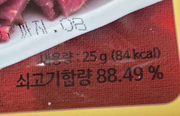 아래 사진은 같은 브랜드 쇠고기육포와 민속통육포(돼지고기) 두 가지를 담은 것.