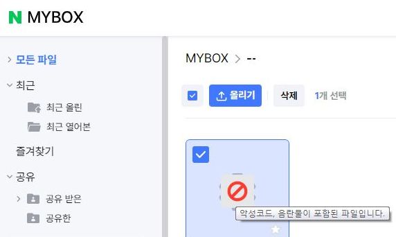 자체 백신검사, 자체 검열에 걸린 파일은 삭제만 가능합니다.