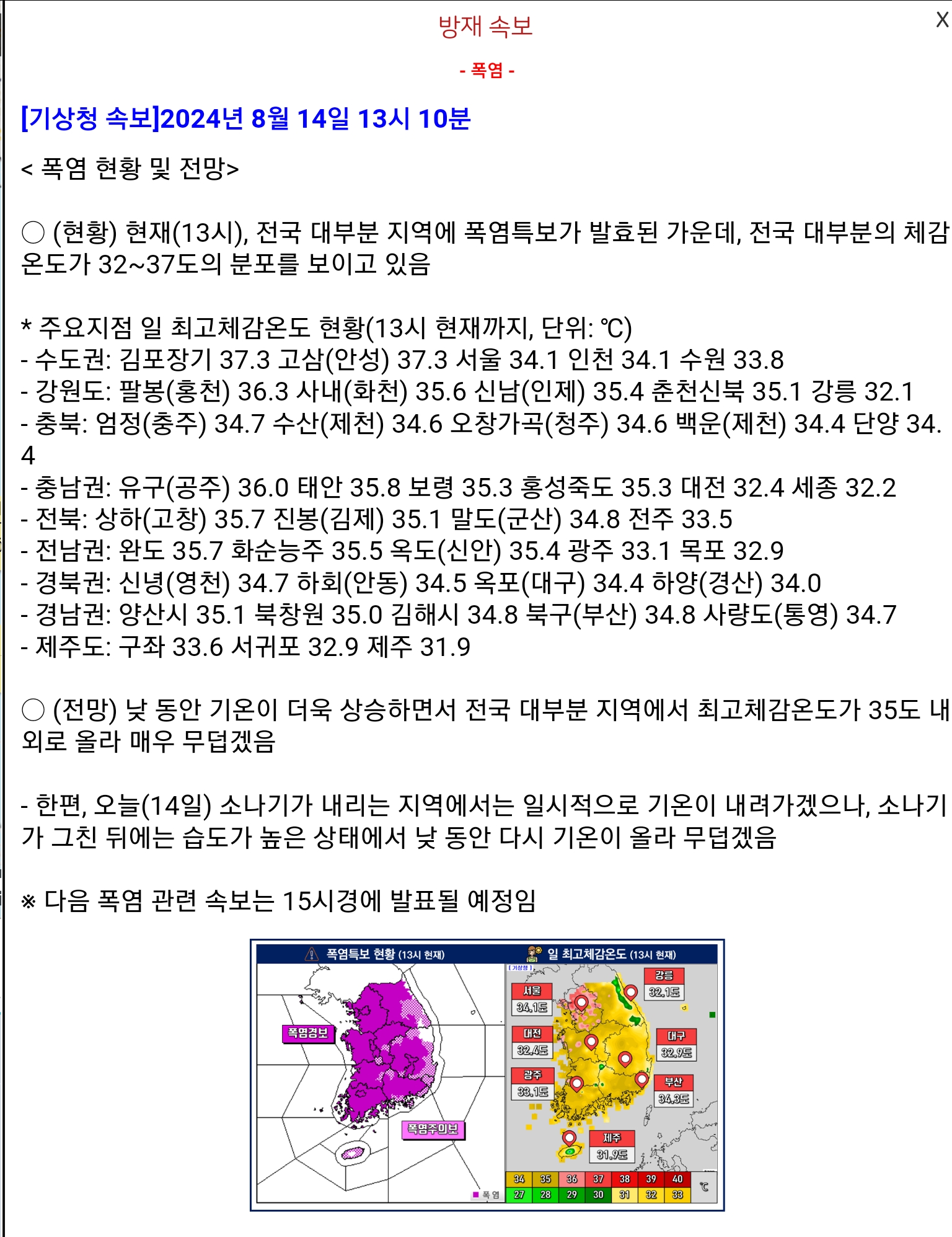 기상청 폭염특보 2024.8.14.13:10
