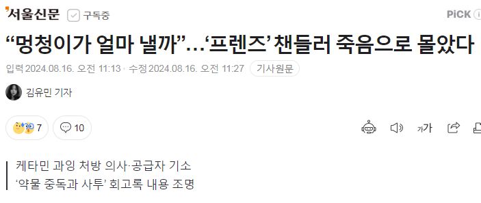 “멍청이가 얼마 낼까”…‘프렌즈’ 챈들러 죽음으로 몰았다