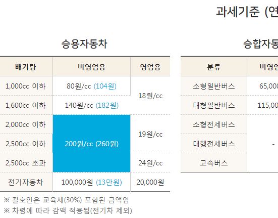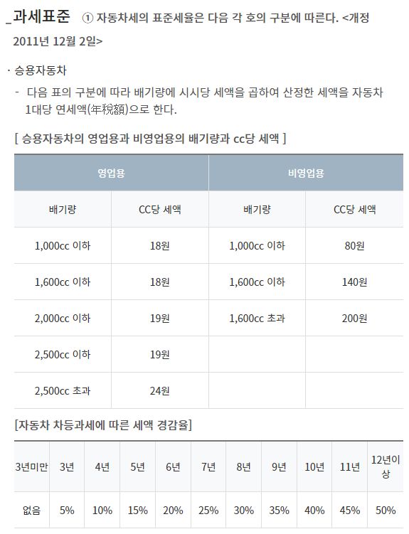 지금 승용차는 기본적으로 배기량기준으로 산정하고 연식이 오래되면 감면하는 구조.