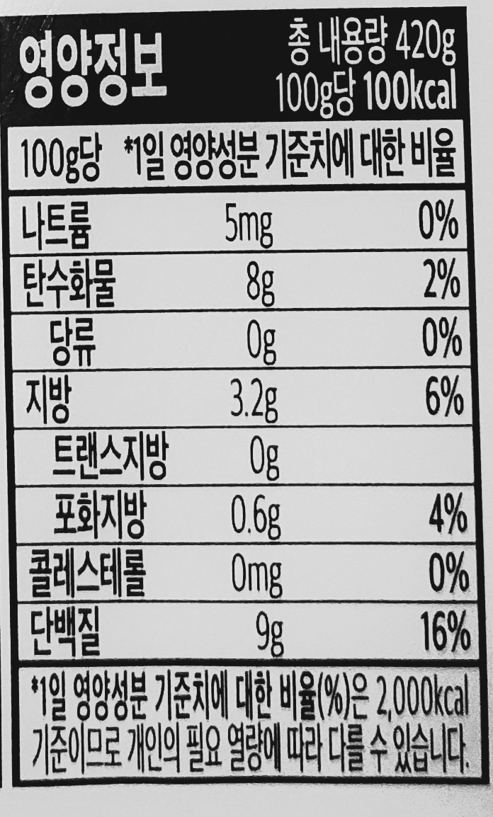 420그램 한 모에 단백질은 9그램