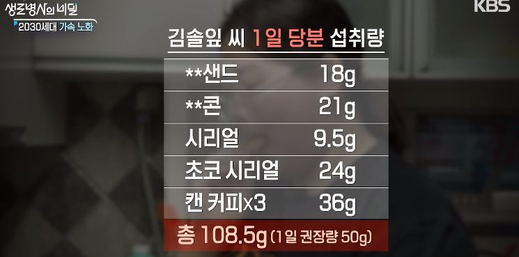 하루 3캔 이상의 캔커피(설탕)와 과자로 스트레스 해소.