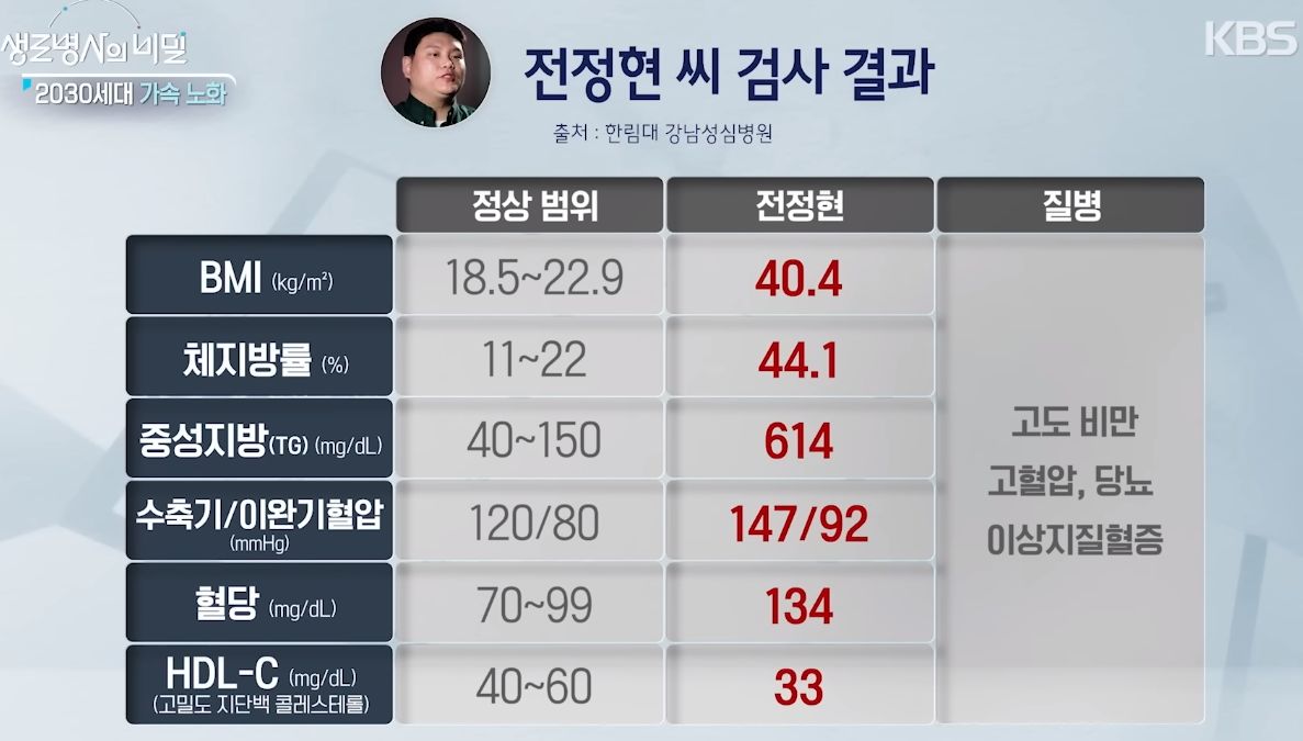 "살빼야 한다고 생각은 하지만 아직은 괜찮겠지": 당뇨병, 고지혈증, 고혈압 삼총사가 다 있네?