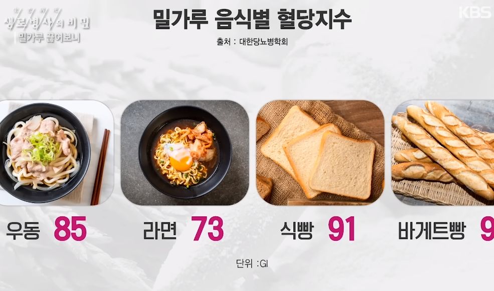 밀가루 중독에 관한 (KBS 생로병사 20221207): 감정적 식욕에 굴복하기를 반복하지 마라/:/ 쌀, 밀, 밀가루의 성분과 혈당 본문