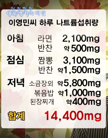 저분은 결국 하루에 소금 36g을 먹는 셈.