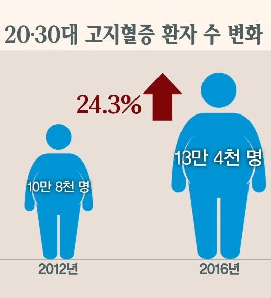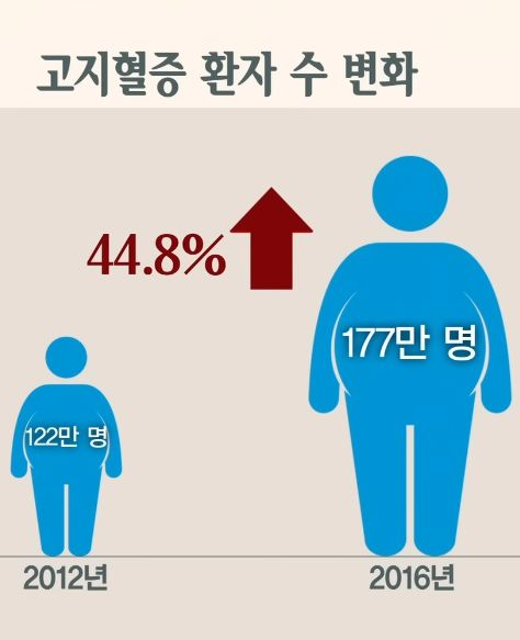 지금 크게 늘어난 고지혈증환자가 미래에는 심혈관질환, 뇌혈관질환, 당뇨병환자 급증이 될 것이다.