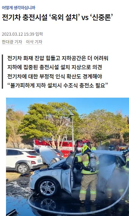 전기자동차가 크게 늘어나고 충전시설(충전기) 설치가 의무화됐지만 충전기 설치 방법을 둘러싼 논란이 계속되고 있다. 일부 지방자치단체와 소방청은 ‘지하공간 화재 위험’ 등을 우...