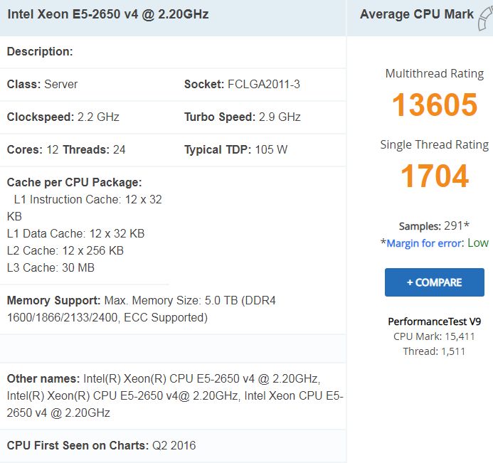 https://www.cpubenchmark.net/cpu.php?cpu=Intel+Xeon+E5-2650+v4+%40+2.20GHz&id=2797