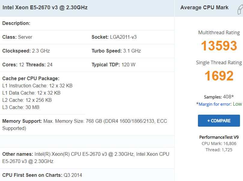 https://www.cpubenchmark.net/cpu.php?cpu=Intel+Xeon+E5-2670+v3+%40+2.30GHz&id=2337