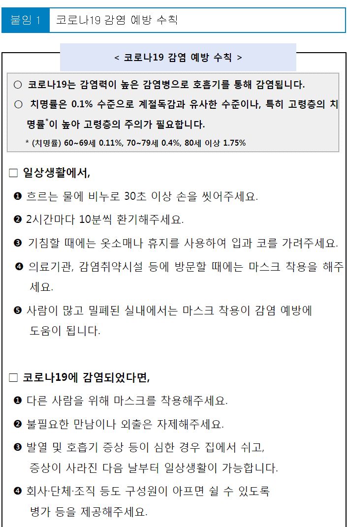 코로나19 감염 예방 수칙