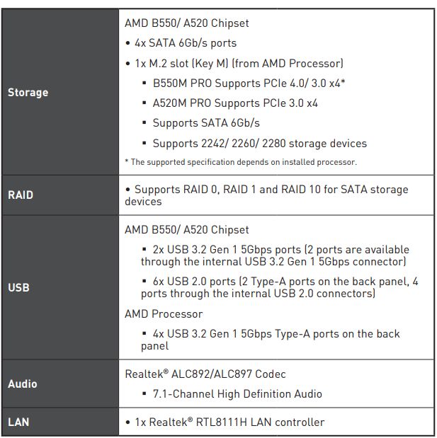 MSI A520M PRO 메인보드 (현재 단종) 제품정보 본문