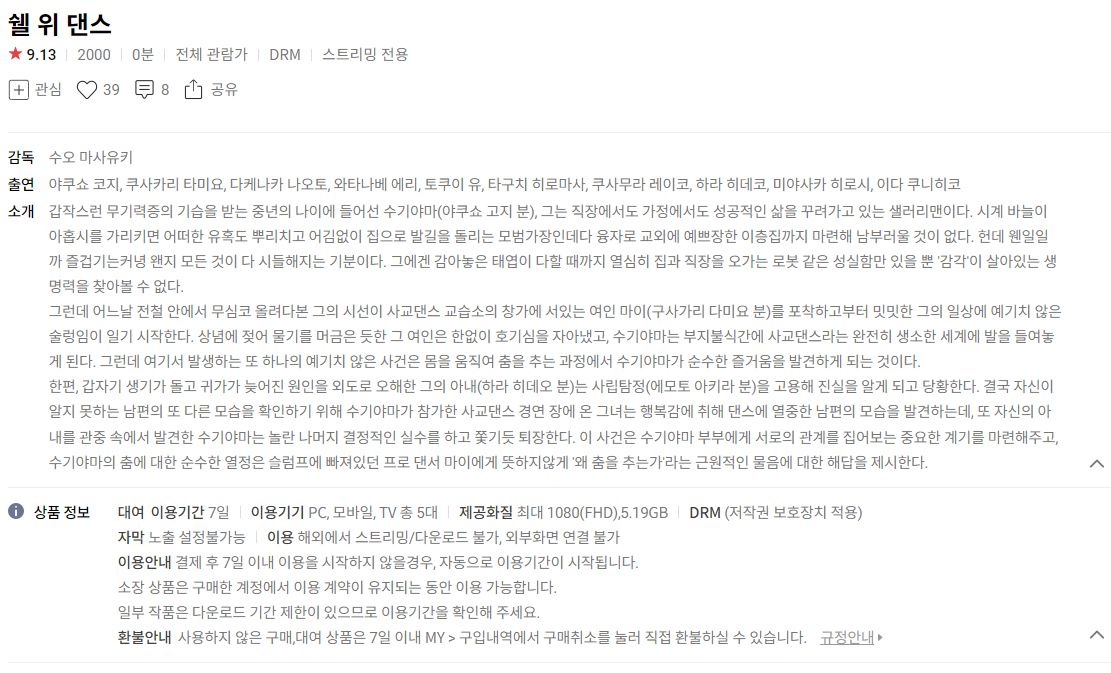 (네이버시리즈온 무료영화) 시시콜콜한 이야기, 바쿠만, 쉘 위 댄스 등 본문