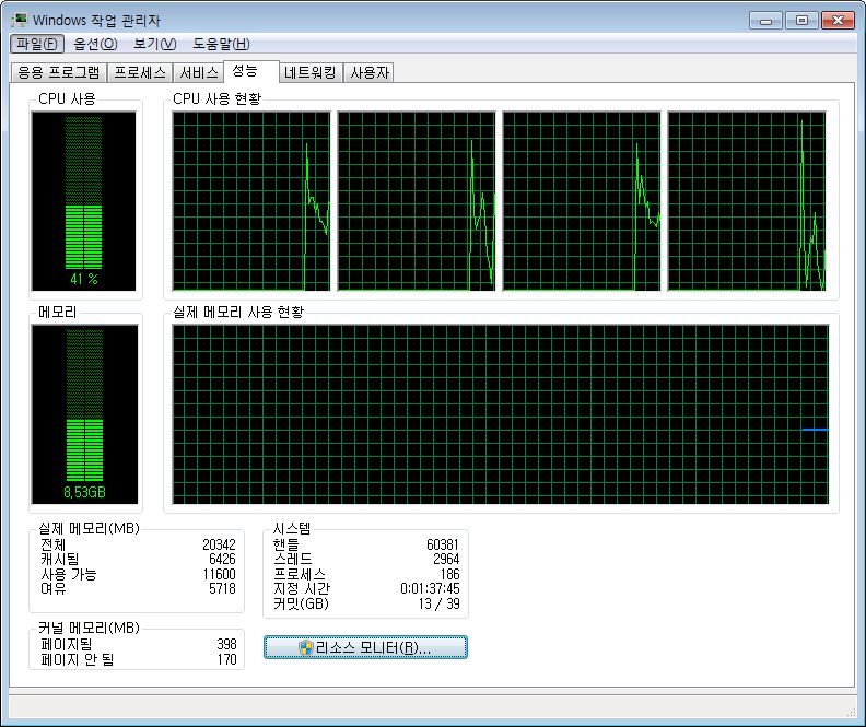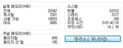 현재 사용 중에 여유램은 3~5기가 정도가 남고, 아주 가끔 500메가아래로 떨어져 스와핑이 일어난다.