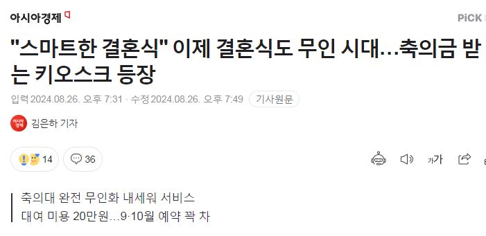 "스마트한 결혼식" 이제 결혼식도 무인 시대…축의금 받는 키오스크 등장