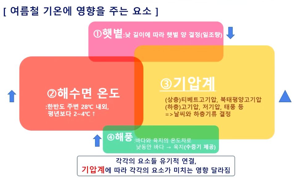 여름철 기온에 영향을 주는 요소: 햇볕, 해수면 온도, 기압계, 해풍