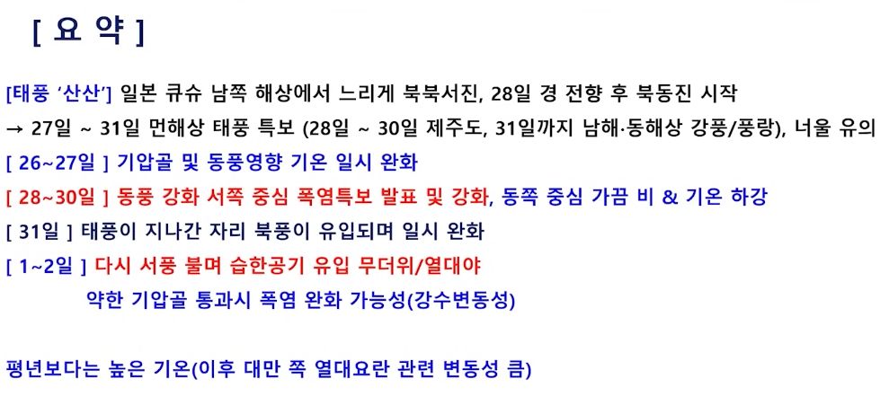 2024.8.27~9.5 폭염특보있지만, 선선해진 날씨/:/ 태풍 산산/:/ 올여름 한반도 기후설명 본문