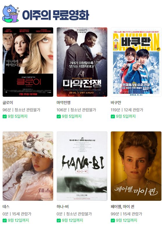 네이버 주말의 비디오방입니다. 스트리밍형식으로 제공됩니다.