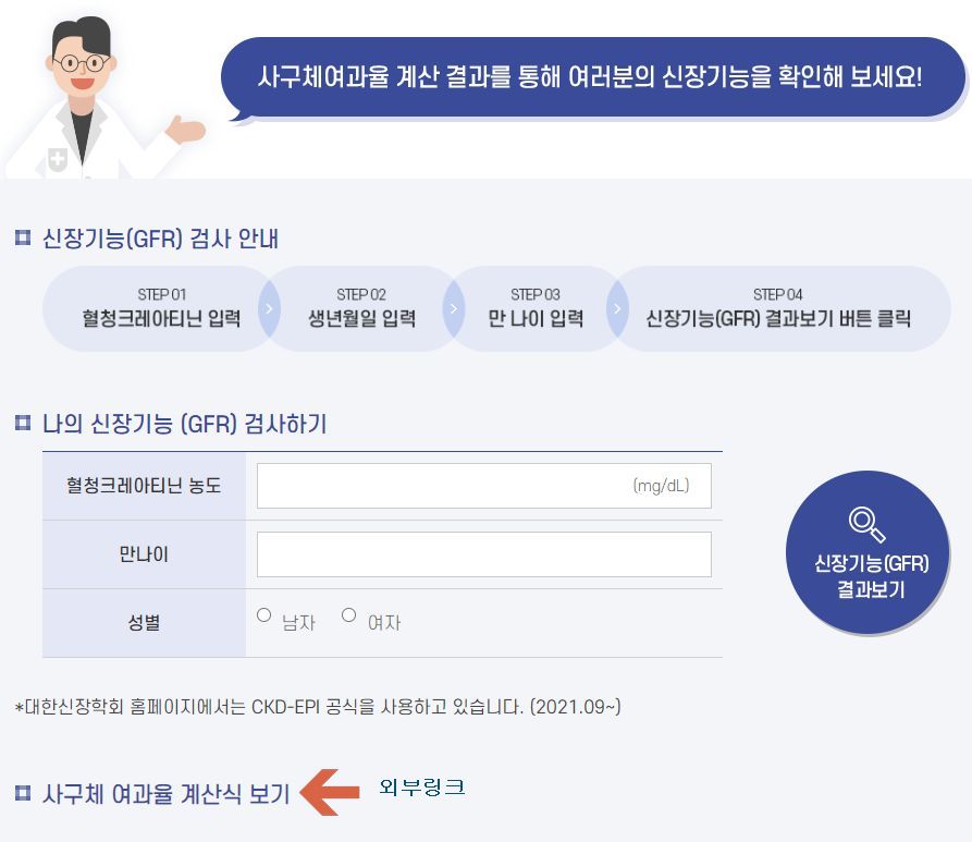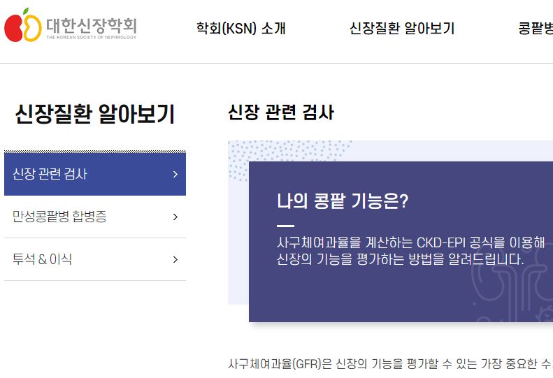 대한신장학회, 신장 관련 검사: 혈청크레아티닌 농도로 eGFR 계산하기