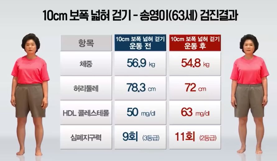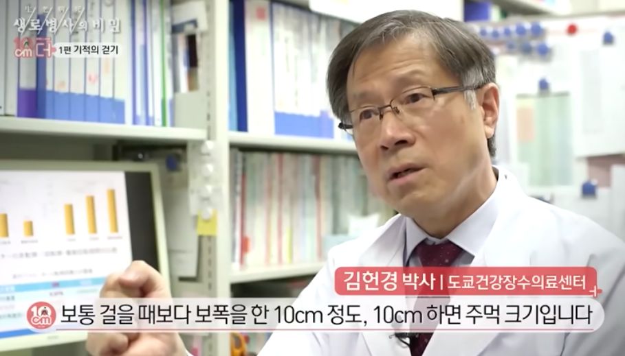걷기운동에 관한: 10cm 더 보폭을 넓혀 빨리 걷기, KBS생로병사 2020.5.6.방송분 본문