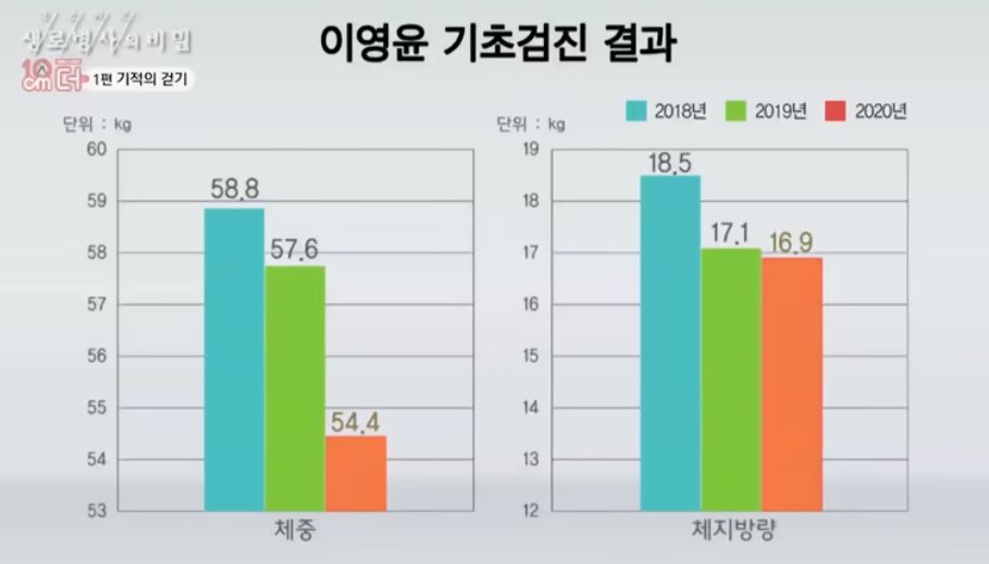 체중, BMI, 체지방량, 체지방률 모두 개선됐다.