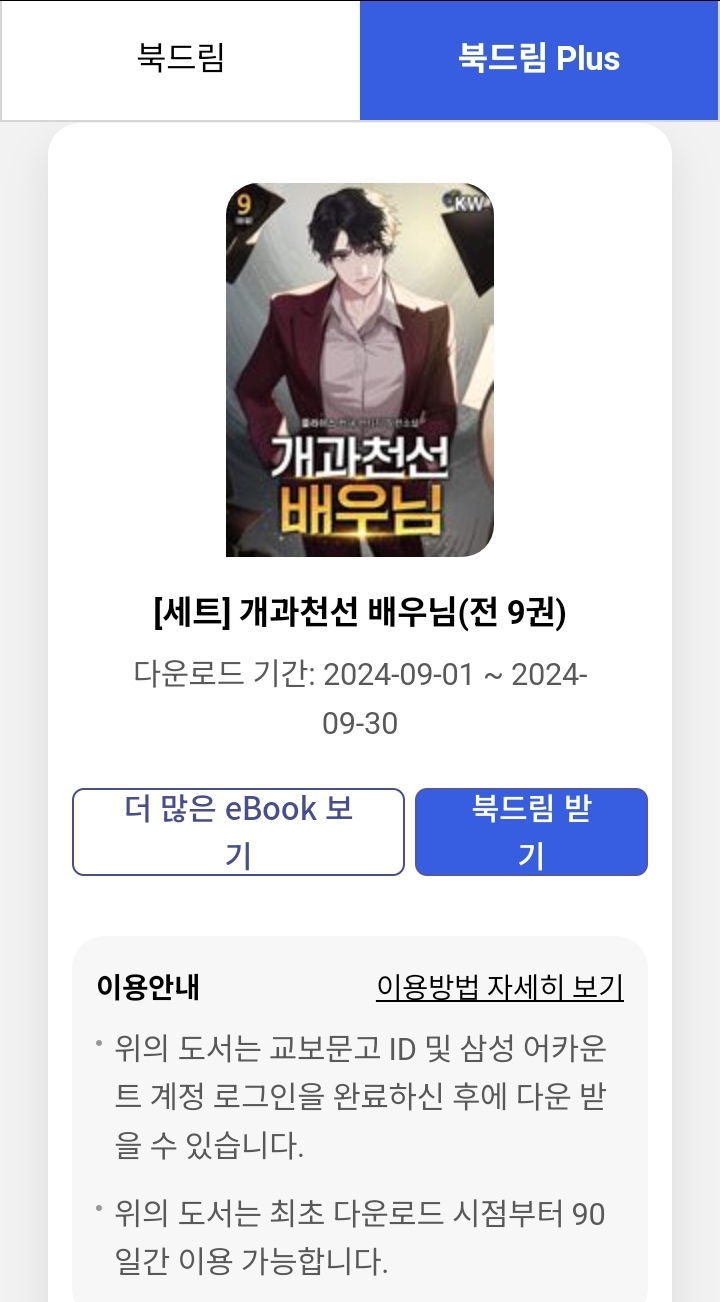 지금, 월초부터 아용가능한 독자는 삼성전자 갤럭시 단말기 사용자로서, 갤럭시 스토어에서 교보ebook for samsung 앱을 설치한 사람입니다.