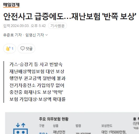 재난보험을 잘 안 들고 소액으로 든다는 기사 본문