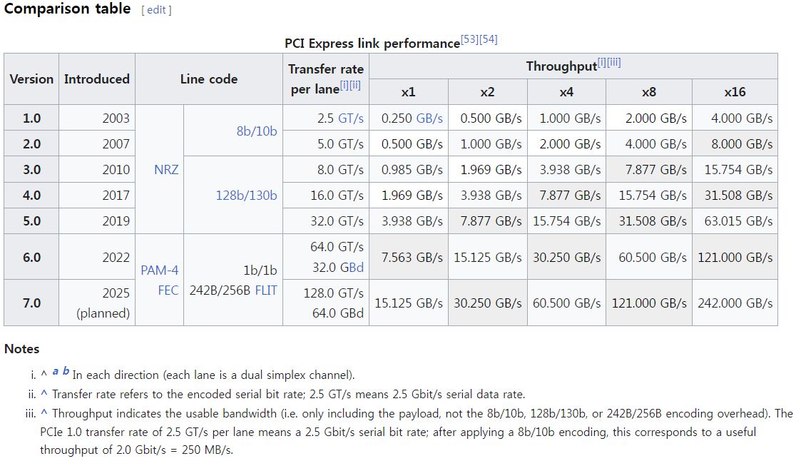 NVMe SSD를 꽂아 쓸 어댑터 생각, PCIe Gen ? 인터페이스규격과 전송속도한계에 대해 찾아본 것 본문