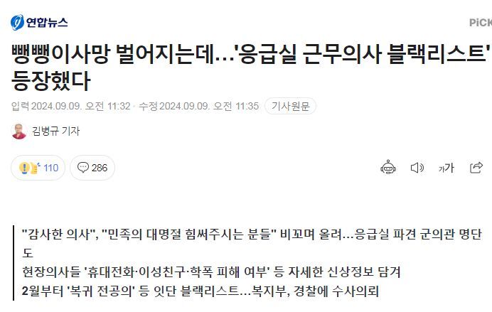 응급실 근무의사 블랙리스트 까지 등장 - 2024.9.9