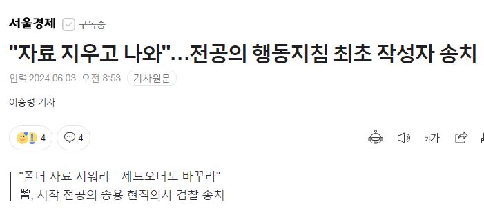 "자료 지우고 나와"…전공의 행동지침 최초 작성자 송치