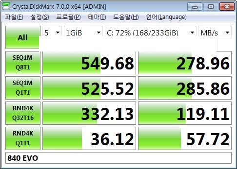 예를 들어 크리스탈디스크마크는 요즘 중가형 SSD의 랜덤 4k는 저것의 10배까지는 안 나오고, 비슷한 놈도 있고 몇 배 빠른 놈도 있고 그런 듯.